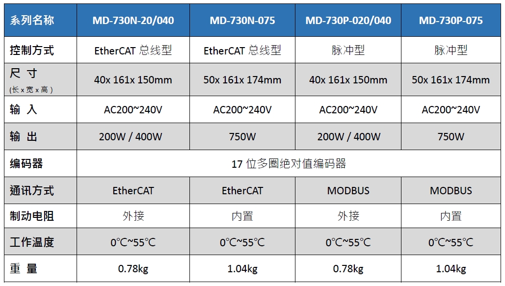 隨著工業自動化、智能制造和機器人技術的快速發展,對高精度、高動態響應、高可靠性的運動控制需求日益增長。全球標準電源領航者–明緯,深耕標準電源領域四十余年,以高性價比與高產品效益為基礎,推出MD-730系列伺服驅動器,包含總線型與脈沖型兩種控制方式,200W、400W、750W共計6款產品,對于 3C、光伏、電池、包裝及其它眾多行業領域的標準應用,提供優異的性能,為企業提供高效生產力。