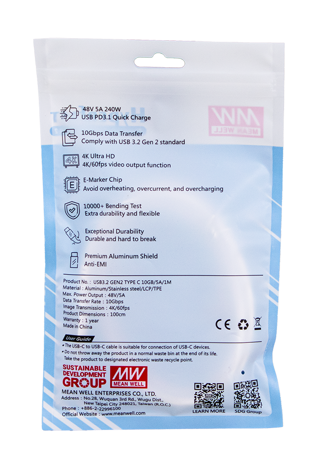 這次將品牌變更為MEAN WELL,同時產品從原本高傳輸10Gbps與快充100W升級到240W (輸出提升到48V),兼容PD3.1快充協議,提供更高功率的充電與更快的充電速度,不再局限于手機、相機、鍵盤、鼠標和耳機等3C電子裝置,舉凡筆記本計算機、音響、游戲機、家電、高功率電器與電動工具皆適用。