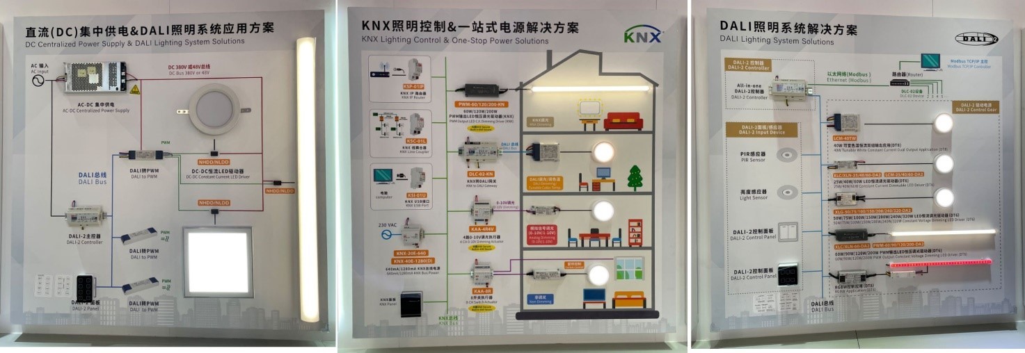 明緯展示完整KNX及DALI智能照明體驗(yàn)區(qū),提供數(shù)字調(diào)光解決方案,可讓照明變得更智能并結(jié)合健康照明,提供使用者更多不同的照明情境設(shè)定。此外,采用直流集中供電(380V or 48V DC)照明的轉(zhuǎn)換效率高于交流電,能夠降低電力轉(zhuǎn)換損耗,還可以減少電源供應(yīng)器使用的零件數(shù)量,并可與未來(lái)綠能發(fā)電和儲(chǔ)能系統(tǒng)相結(jié)合,為企業(yè)提供節(jié)能減碳、友善環(huán)境的解決方案。
