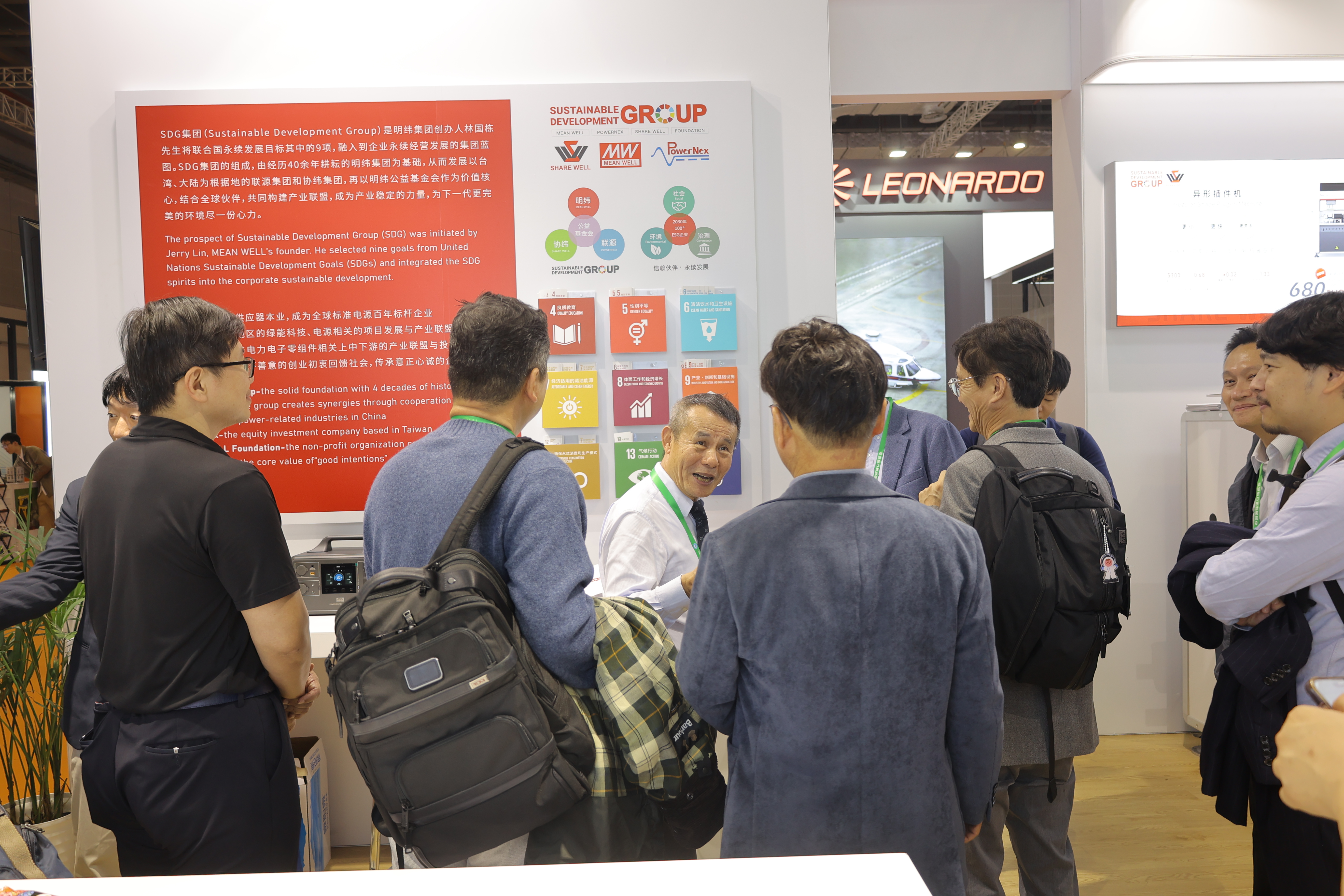 SDG集團創辦人林先生親臨現場,為客戶講述SDG理念。創辦人將聯合國永續發展目標其中9項,融入到集團永續經營發展的藍圖當中。由明緯、聯源、協緯,以及明緯公益基金會建構SDG集團。結合全球信賴伙伴,共同構建 ESG 產業聯盟,目標于 2030 年創建百家 ESG 企業,為下一代建立更完美的環境盡一份心力!