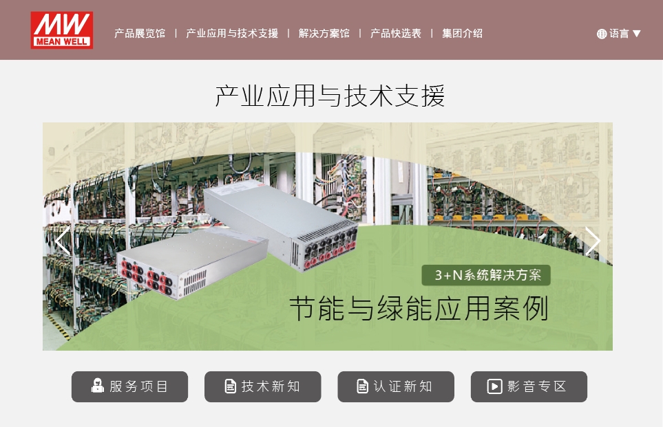 以Banner輪播方式,將所有主推產品置于首頁,帶您快速瀏覽最新的標準電源與創新解決方案。