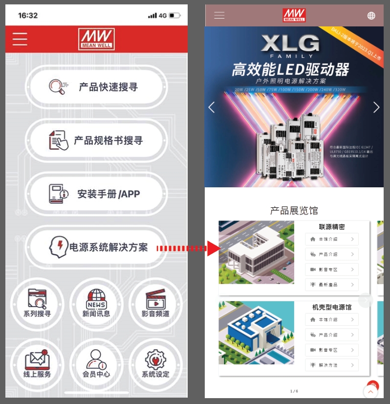 現在,您也可以使用MEAN WELL APP查詢『在線展覽館』!手機版的在線展覽館,等您來體驗!