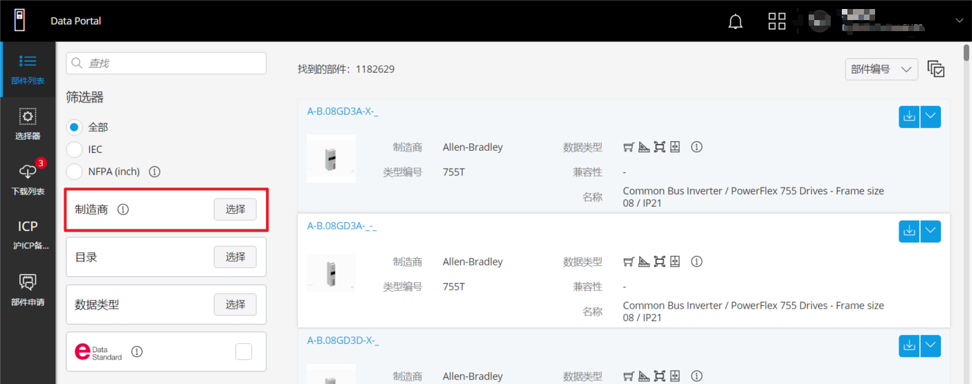 為了進一步縮小產品的選擇范圍,可以通過上面的查找框直接搜索產品型號和產品系列等。