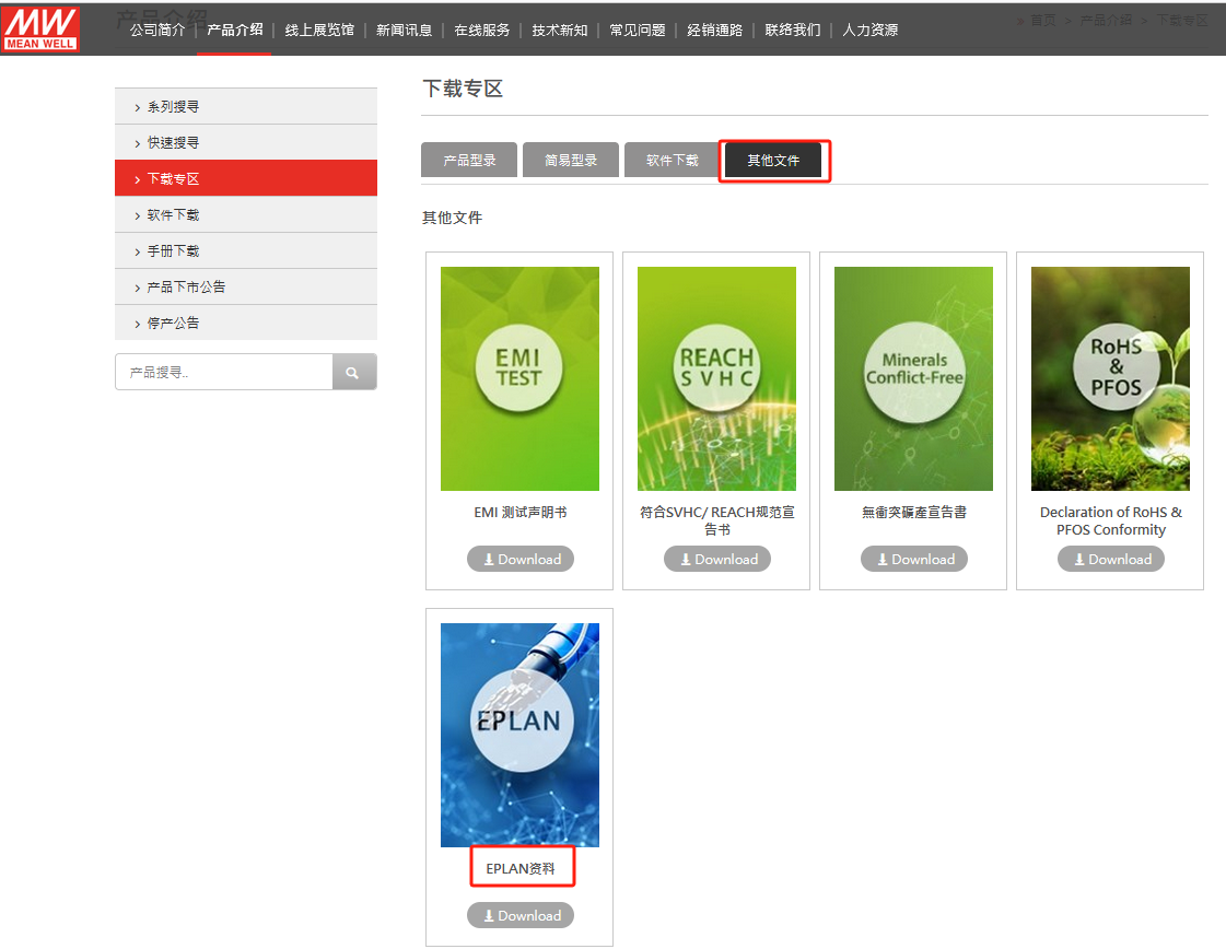 明緯電源產品的Eplan軟件EDZ庫文件下載渠道: