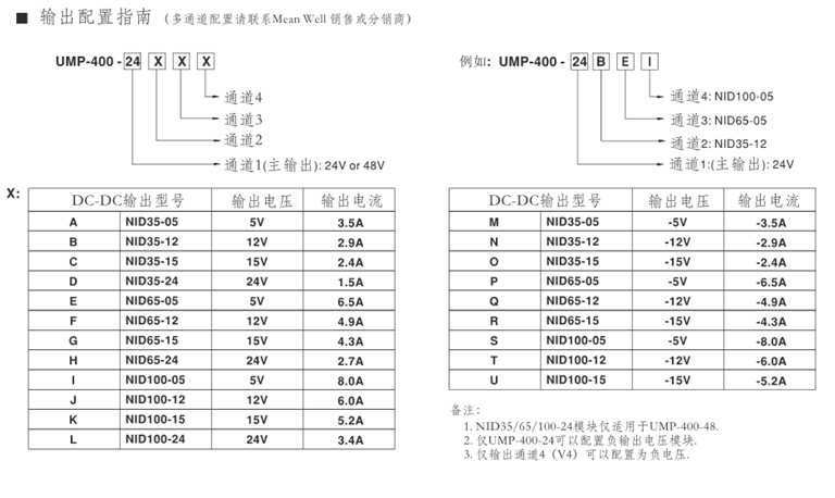 如圖5所示,因為NID35/65/100連接成負電壓輸出時,其輸入電壓必須小于30VDC,故僅UMP-400-24可以配置負輸出電壓模塊。