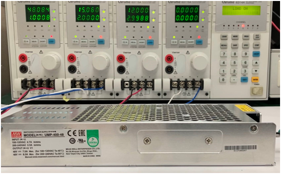 圖1顯示了明緯單臺模塊電源產品 NMP1K2-HHEKC#-01的漏電流測試結果,該機型由24V,12V,48V和5V四個輸出模塊組成。