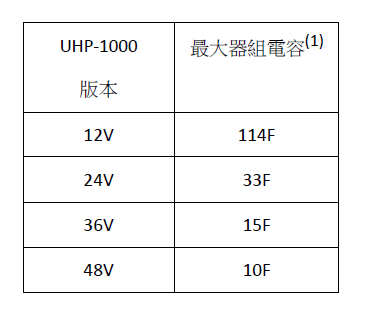 此外,對于超級電容器組充電應用,應注意其最大容量;如果它的容量超過表一的數值,則由于在充電過程開始時,施加的電壓太低,電源將進入欠壓保護模式并在3秒后關閉。