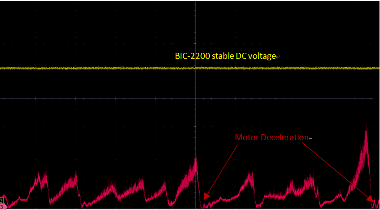 圖 2. BIC-2200 在馬達減速期間穩定輸出電壓